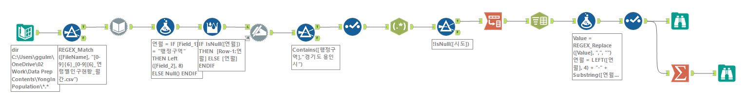 * 월별 인구 데이터 원본 파일의 필드명이 파일마다 다르기 때문에 Tableau Prep에서는 이 단계를 데이터 피벗 이후에 진행