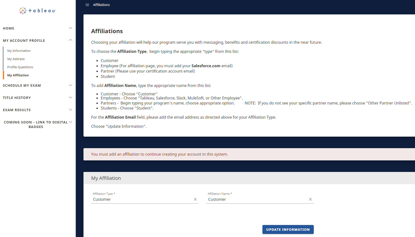 계속해서 My Affiliations 항목으로 넘어가면 소속을 확인하게 됩니다. 각자의 소속에 해당되는 것으로 기입하시면 됩니다. 저는 Customer - Customer 선택하였습니다