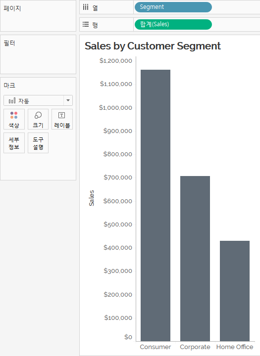 매출(Sales)을 고객구분(Segment)으로 분기하면,