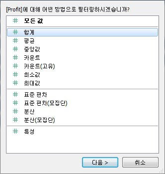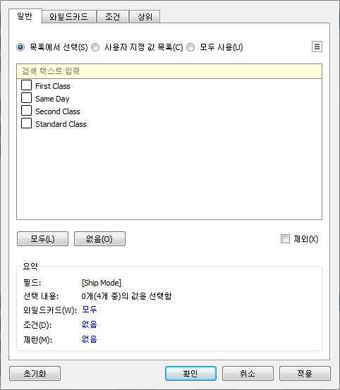 연속형 필드와 불연속형 필드는 필터에 올렸을 때도 다른 방식으로 작동합니다