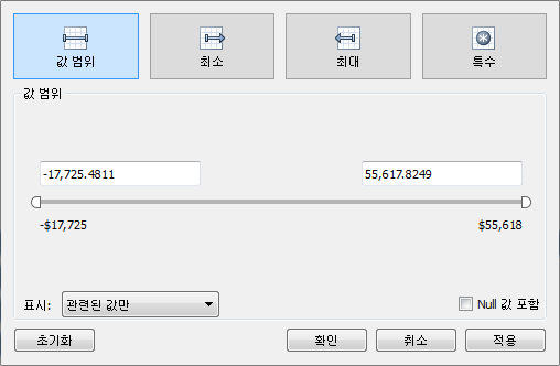 어떠한 경우를 선택하든지, 오른쪽 그림과 같이 값의 범위를 잡아줄 수 있는 형태로 제시됩니다
