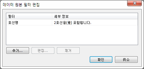 이럴 경우 2호선 데이터만 불러올 수 있는 기능이 데이터 원본 필터입니다