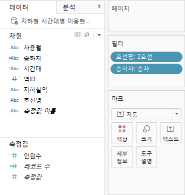 왼쪽 그림과 같이 호선과 승하차를 필터에 올린 상황을 가정해봅시다