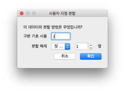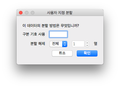 그러면 대화상자가 나오면서, 어떤 구분자를 활용할래? 자르고 난 후 결과물은 어떤 것을 가지고 올래? 물어봅니다