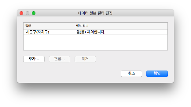 여기에서는 데이터 원본 필터 사용법을 복습하기 위해 광역 지자체 행만 제외해보겠습니다