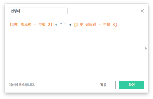 특이한 점은 '분할 2'와 '분할 3' 사이에 공백 한 칸을 쌍따옴표를 활용해 넣어줬습니다, 두 필드를 붙이되 중간에 한 칸 띄우란 의미이죠