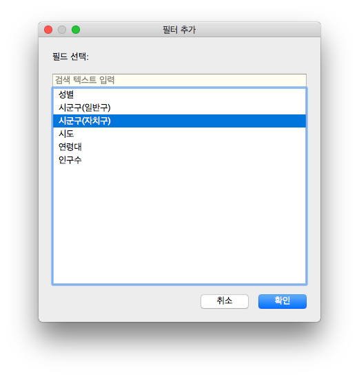 데이터 원본 필터에서 시군구(일반구) 필드의 빈 값(blank)만 살려두면 됩니다