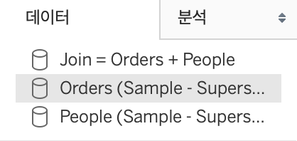 블렌딩은 대상이 되는 두 개(또는 그 이상)의 테이블이 각각 태블로에 올라와 있을 때 사용할 수 있습니다